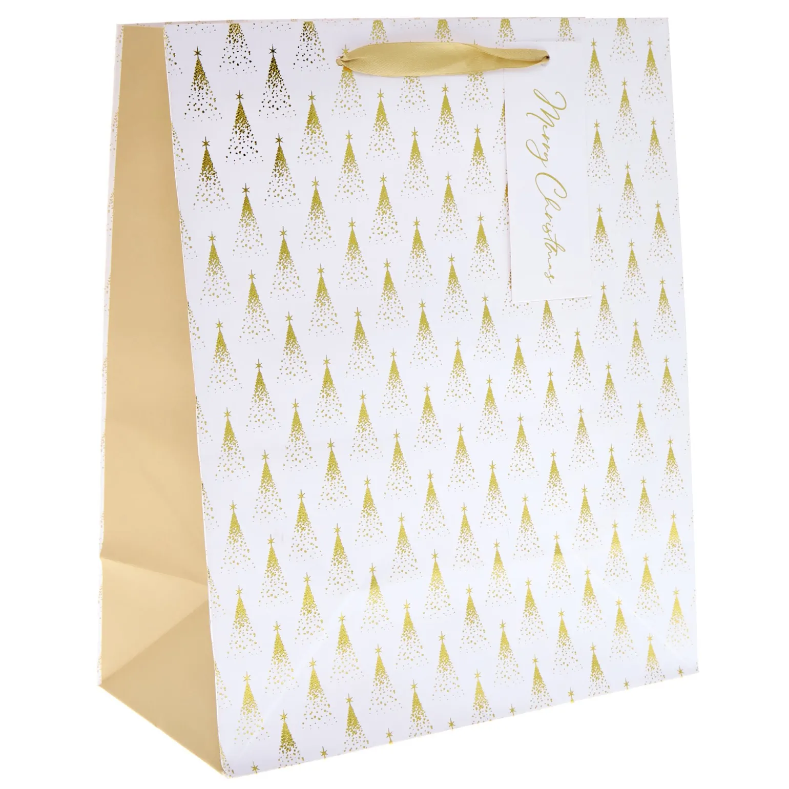 White & Gold Trees Large Portrait Christmas Gift Bag
